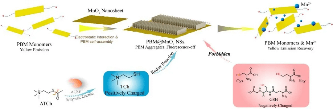 乙酰胆碱酯酶(Acetylcholinesterase,AChE)是一种重要的神经传递酶,具有平衡乙酰胆碱(ATCh)的主要生理功能,其活性与多种神经疾病密切相关,如阿尔茨海默病(AD)、抑郁症等。因此,开发高效的检测AChE的传感分析方法至关重要。