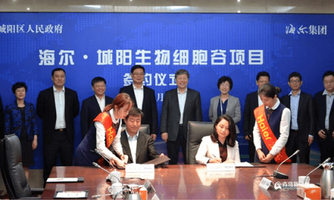 2018年5月17日上午,旨在打造千亿级生物科技产业集群的海尔•城阳生物细胞谷项目正式签约落户城阳。海尔集团董事局主席兼首席执行官张瑞敏、海尔集团执行副总裁兼首席财务官谭丽霞、城阳区委书记王波、区长李红兵等共同出席了签约仪式。